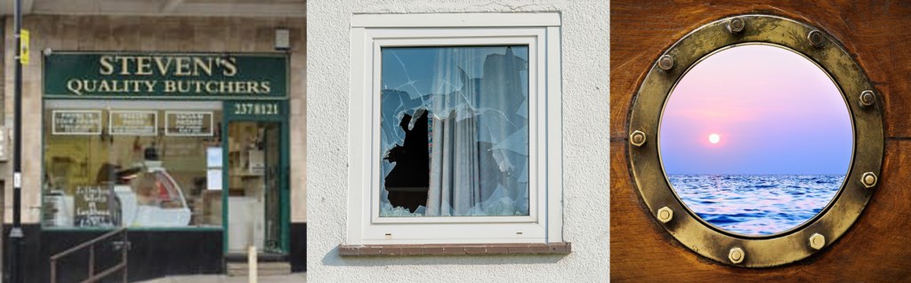 1. I thoroughly enjoyed your tryptich, Graham! The poem for Scott and his Lady in Greggs had me grinning, especially the lines ‘It’s short crust and simple – her pies are so nice!’ and ‘come on you aproned stringed beauty, let’s get that not tied’ (I’m not sure if that should be ‘not’ or ‘knot’). ‘A Mother’s Pane’ was poignant, with an interesting rhyme scheme, and I was swept away by ‘A lover’s porthole’, with its ‘droplets of nectar time’ and ‘fragile porcelain dreamscapes’. My favourite line is ‘Gulls cry high above crashing waves, washing inscriptions from the sand.’