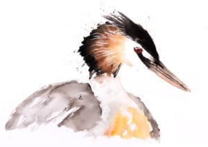 A Grebe breaks the water and the scene.