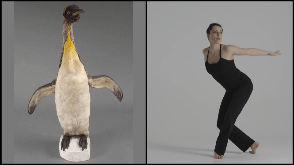 A dancer pretends to be a hummingbird.