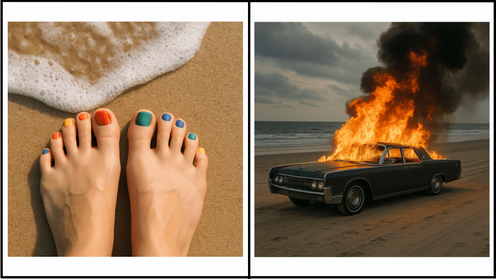 The evening tide tickling our toes as we laughed at the thought of a final sunset.